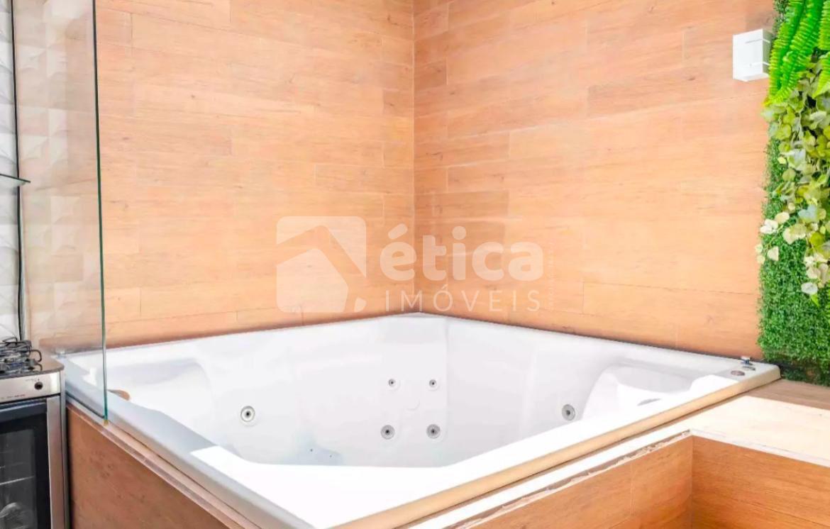 Lavabo e uma área de festas completa, com churrasqueira, teto retrátil e uma luxuosa banheira de hidromassagem, ideal para momentos de relaxamento e lazer.