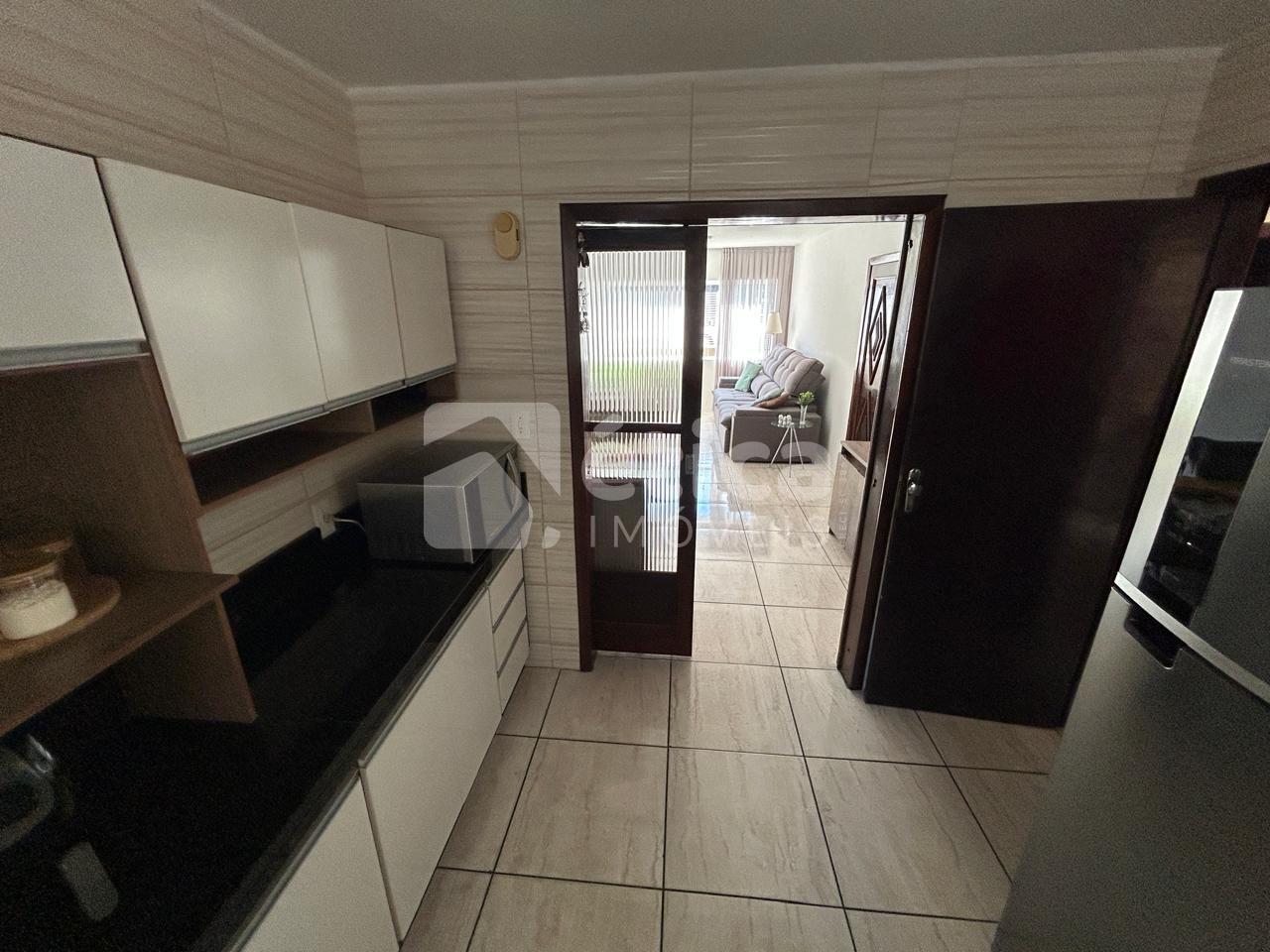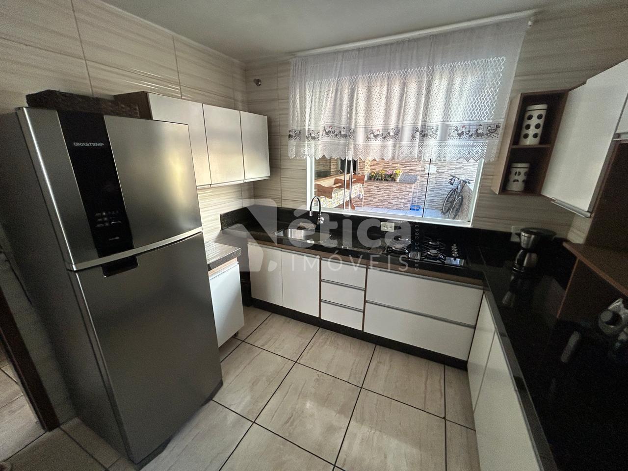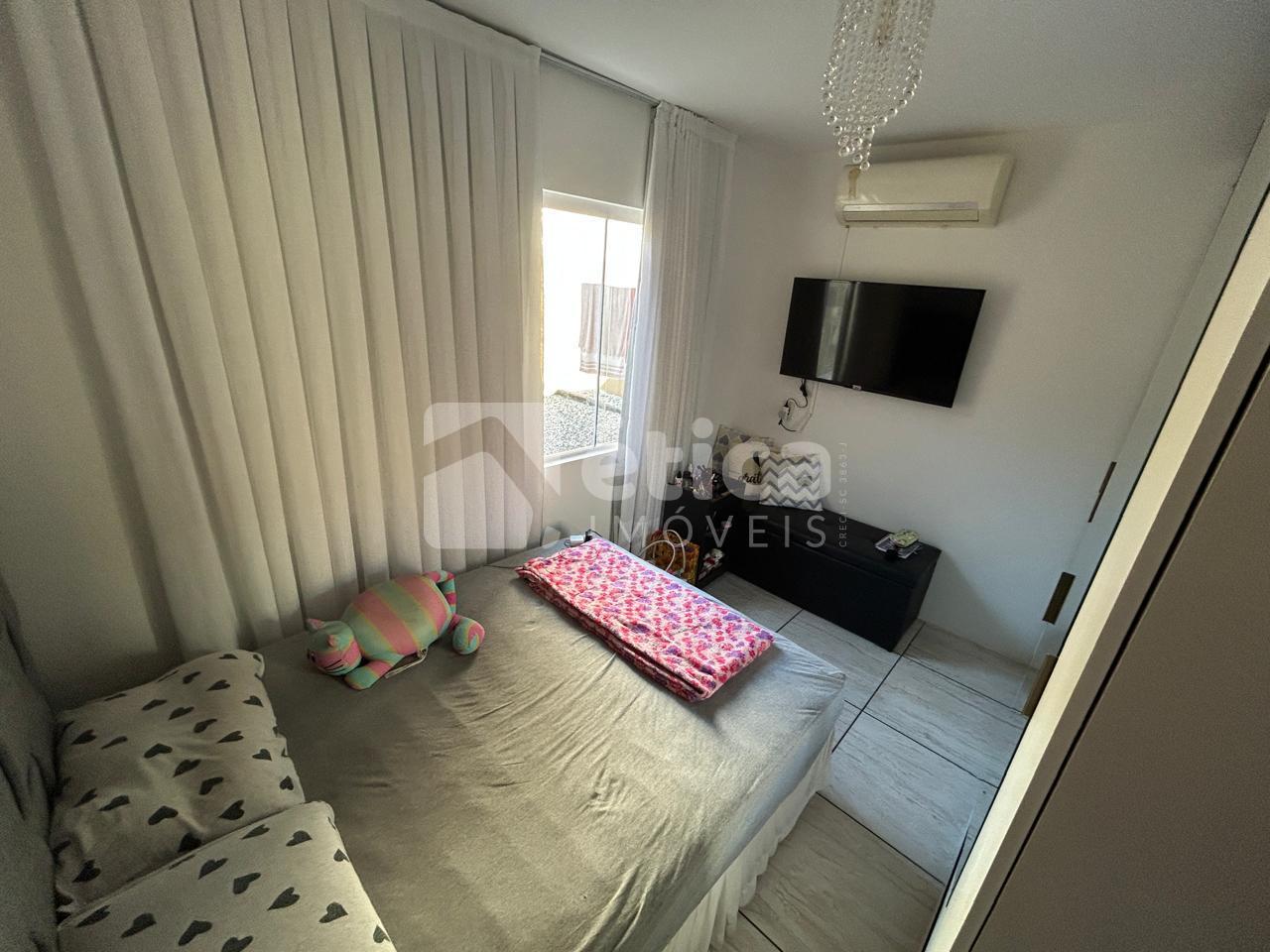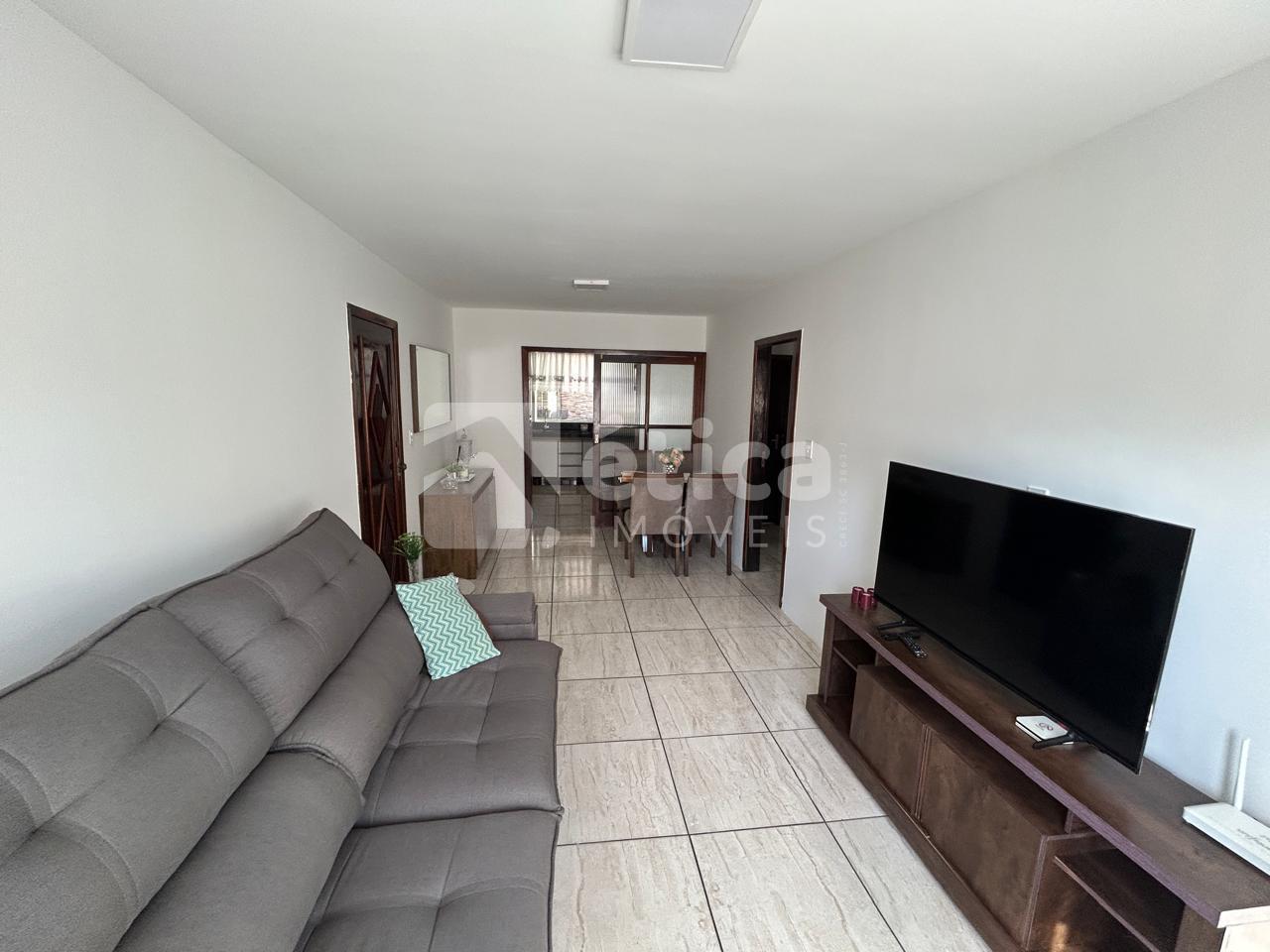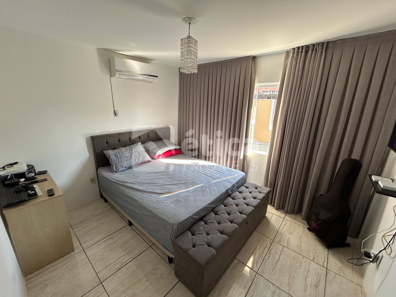 Construída em alvenaria com laje de concreto, a residência conta com três quartos, banheiro social, cozinha ampla, living integrado com salas de estar e jantar, lavanderia, depósito, espaço para três carros e uma generosa área de lazer coberta com churrasqueira e pia, totalizando 97,50 m² de área construída. Nos fundos, há um pátio perfeito para a construção de uma piscina.