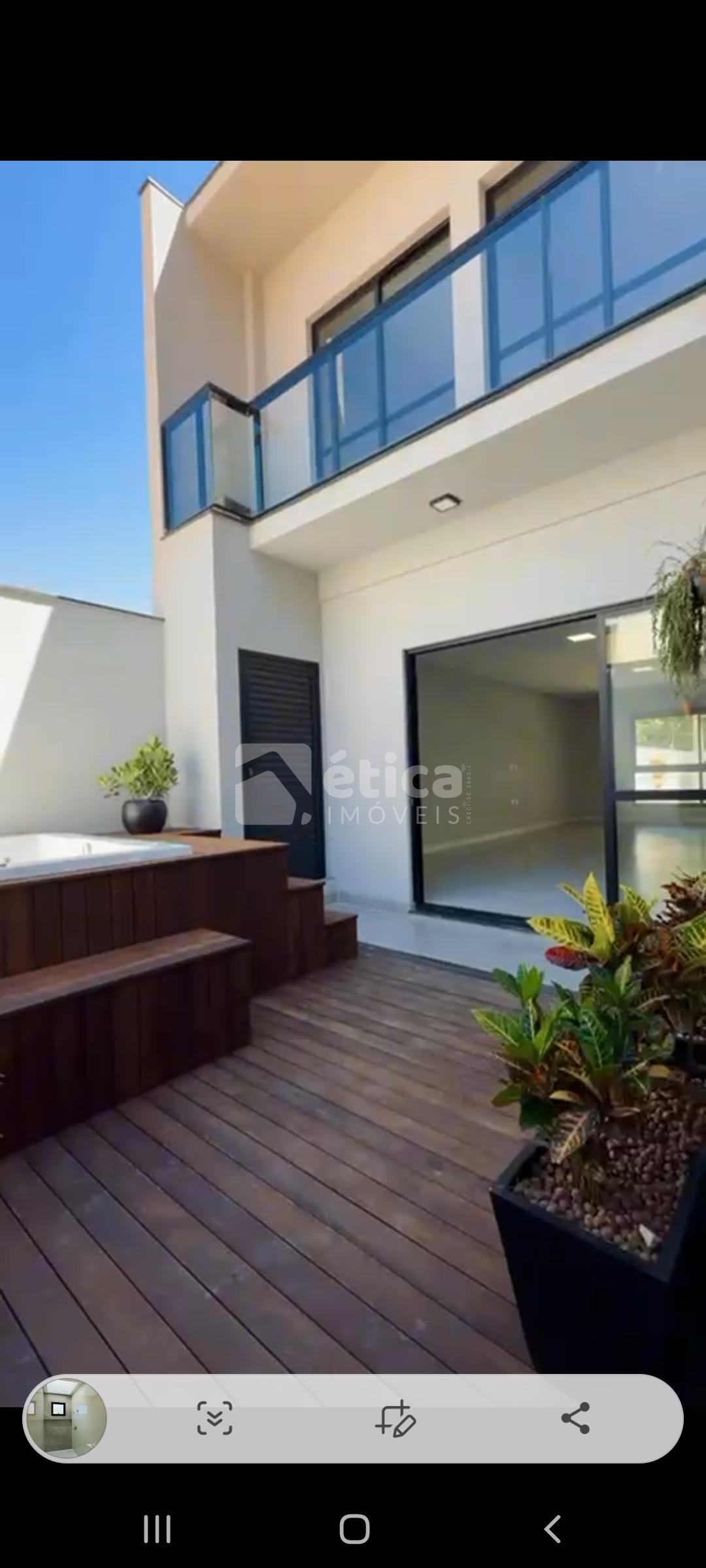 Sobrado de alto padrão na praia de Cabeçudas, 300 metros do mar, exuberante natureza, rua larga e tranquila, com arquitetura moderna, área privativa de 170 m2, 3 suítes, amplo living com churrasqueira a carvão, lavabo e lavanderia, garagem para 3 carros com tomadas preparadas para receber carregadores de carros elétricos, sacadas em todos os quartos, porcelanato 1,20 x 1,20 piso inferior, esquadrias de alumínio, piso vinílico no andar superior, breeze frontal em madeira nobre, fechadura e porteiro eletrônicos, rede elétrica trifásica, spa (banheira) e jardim integrados ao living, preparação para ar condicionado em todos os cômodos, preparação para aquecedor elétrico ou a gás. Fino acabamento. Pronto para morar.